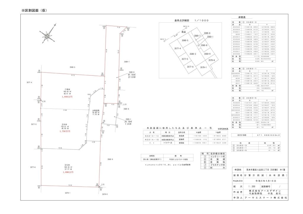 ◆私道負担面積90㎡位置指定道路(現在持分9㎡持分1/30)及び新設共有道路(私道)については56.86㎡(約17.20坪) 持分1/3 それぞれ1~3号地 持分あり